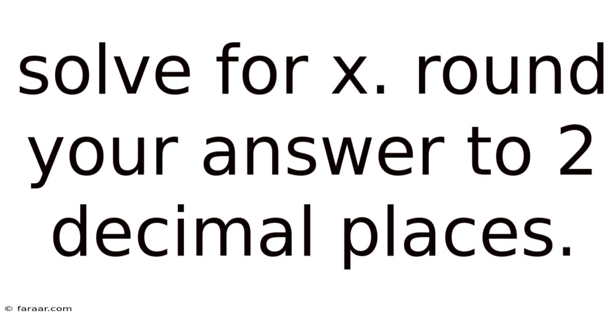 Solving for x is a fundamental concept in algebra and a crucial skill in various fields, from simple arithmetic to advanced calculus and beyond. This thorough look will walk you through the process of solving for x, covering various equation types, techniques, and offering practical examples to solidify your understanding. We'll also explore the importance of rounding answers to a specified number of decimal places, like the frequently encountered "round your answer to 2 decimal places" instruction.